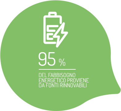 Il 95% del fabbisogno energetico proviene da fonti rinnovabili Calcolato come la percentuale di energia rinnovabile (autoprodotta e acquistata) sul totale di energia consumata