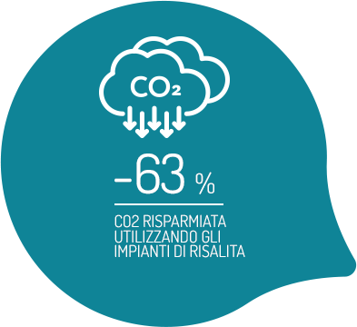 Abbiamo calcolato che spostandosi all’interno delle località della destinazione utilizzando gli impianti di risalita, si possono risparmiare mediamente 26%* di emissioni di CO2 rispetto a muoversi con l’automobile?